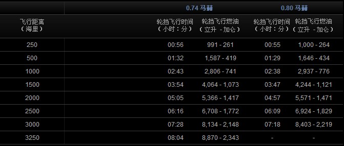 輪擋時(shí)間及輪擋燃油 假設(shè)條件: A1E發(fā)動(dòng)機(jī); ISA; 無風(fēng)。 NBAA IFR 備份燃油: 8名乘客
