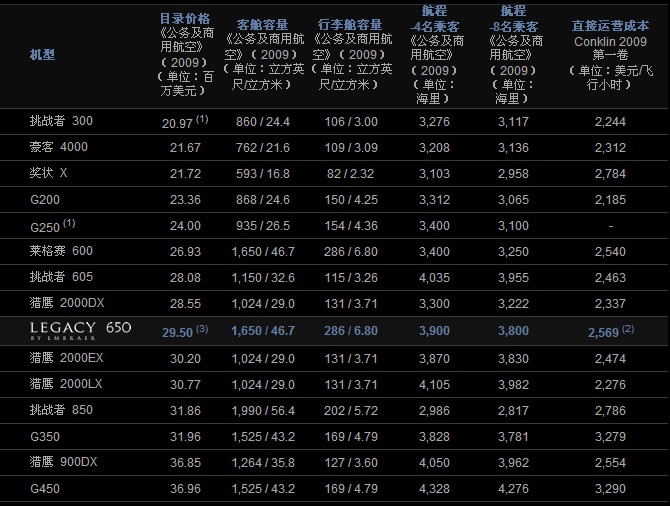 (3) 萊格賽650的價格是基于2010年經(jīng)濟狀況