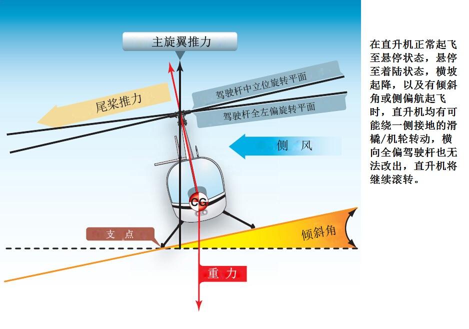 To view this page ensure that Adobe Flash Player version 9.0.124 or greater is installed. 4.3.2 相關研究一般來說,無論地面是否平整,直升機駕駛員均應嫻熟操作。如果直升機在正常起飛著陸與斜坡起飛著陸的情況下均使用相同的傾斜角(直升機與水平面的夾角),或者滑橇/ 機輪位于地面時直升機出現(xiàn)漂移,那么該傾斜角或漂移會使直升機繞仍然接地的滑橇/機輪轉(zhuǎn)動。當這種情況發(fā)生時,相比懸停的直升機而言,橫向操縱駕駛桿的反應速度會更加緩慢,且效果較差。如果允許滾轉(zhuǎn)速率繼續(xù)增大,那么傾斜角將達到臨界值,即使全量橫向操縱駕駛桿也不能將滾轉(zhuǎn)改出,直升機將發(fā)生側翻,引起重大事故。隨著滾轉(zhuǎn)速率增大, 仍有可能改出的角度越來越小。臨界滾轉(zhuǎn)角也相應減小,臨界滾轉(zhuǎn)角在下列情況下會進一步減。河覀然/機輪接地、 左側風、橫向重心靠右、主旋翼拉力幾乎等于直升機重量以及抵左腳蹬。 a)正常起飛和著陸如果在平整且堅硬的地面起飛和著陸,一側滑橇/機輪 位于地面,且升力約等于直升機總重,駕駛員應謹慎操縱不要發(fā)生水平位移。駕駛員應該平穩(wěn)操作并注意駕駛桿配平(利用配平裝置),從而保證俯仰或滾轉(zhuǎn)速率不會增加,尤其是滾轉(zhuǎn)率增加。如果傾斜角開始增加至約5-8°,同時全偏駕駛桿不能對角度進行修正時,駕駛員應減小總距以消除不穩(wěn)定的滾轉(zhuǎn)狀態(tài)。否則傾斜角會達到臨界值,將造成直升機側翻。(參見圖4) ![]() 圖4 直升機右滑橇/機輪接地時的各種作用力示意圖 b)斜坡起飛和著陸在斜坡上進行起飛和著陸時,駕駛員應遵循已公布的操 ![]() 圖 5 向上坡方向滾轉(zhuǎn)動作示意圖 如果直升機在斜坡上并向上坡方向滾轉(zhuǎn),修正時過快放下總距可能引起直升機快速向反方向滾轉(zhuǎn)。如果(著陸時) 上坡方向的滑橇/機輪撞地,會導致直升機上坡方向的滑橇/ 機輪彈起,并且慣性會造成直升機圍繞下坡方向接地點滾轉(zhuǎn)并翻轉(zhuǎn)至一側。駕駛員要避免突然增加總距使直升機離地, 因為這會產(chǎn)生一個很大而且突然的反方向滾轉(zhuǎn)力矩。這種運動可能是無法控制的。如果直升機在一側滑橇/機輪在地面的情況下形成滾轉(zhuǎn)速率,直升機就可能向一側翻轉(zhuǎn)。(參見圖 6) ![]() 圖 6 向下坡方向滾轉(zhuǎn)動作示意圖 |