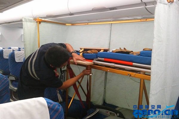 飛機(jī)進(jìn)入航后維護(hù)后,車間便立即派人前往安裝,為節(jié)省成本,切實(shí)落實(shí)南航降本增效措施,機(jī)務(wù)人員關(guān)閉了客艙空調(diào),克服了40余度的客艙悶熱環(huán)境,開展了旅客擔(dān)架安裝。所有工作進(jìn)行地平穩(wěn)有序,但由于員工工作在宛如桑拿房一樣的客艙內(nèi),對大家體力、耐力帶來了極大的挑戰(zhàn),員工們汗流浹背,然而就在擔(dān)架終于完整搭起的那一刻,大家臉上露出了對自己成果滿意的微笑,同時(shí)還不忘再次檢查一下各部位是否牢固,墊子、隔簾等是否會影響擔(dān)架旅客的舒適性, 17日,航班準(zhǔn)時(shí)起飛,順利運(yùn)送擔(dān)架旅客到達(dá)臺灣,參加過此次工作的機(jī)務(wù)人員似乎都已忘記了那酷熱的客艙,在他們談到這次保障和構(gòu)筑海峽兩岸生命通道的事跡時(shí),言語中對更多是對生命的尊敬、對同胞的深厚感情和對于機(jī)務(wù)維修的職業(yè)責(zé)任感和成就感。