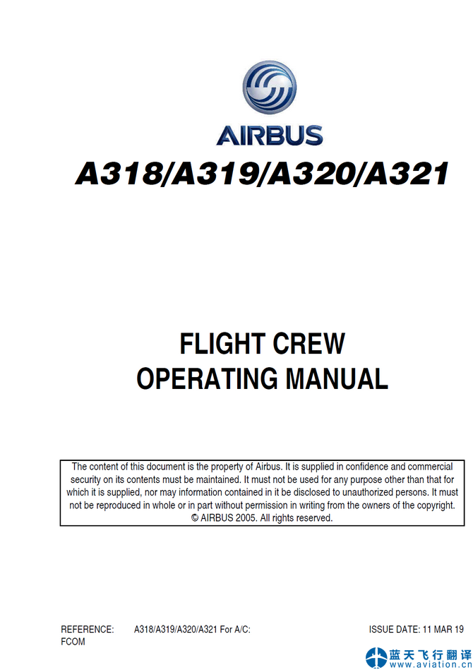 北京藍(lán)天飛行翻譯公司承接大型公務(wù)機(jī)公司的2019年3月11日版本空客公務(wù)機(jī)ACJ319飛行機(jī)組操作手冊(FCOM FLIGHT CREW OPERATING MANUAL)、ACJ319快速檢查單(QRH QUICK REFERENCE HANDBOOK)和ACJ319飛機(jī)飛行手冊(AIRPLANE FLIGHT MANUAL)翻譯任務(wù) 11 MAR 19 ACJ319 FLIGHT CREW OPERATING MANUAL, QRH QUICK REFERENCE HANDBOOK and AIRPLANE FLIGHT MANUAL Translation ![]() ACJ319 FLIGHT CREW OPERATING MANUAL ACJ319 飛行機(jī)組操作手冊 ![]() ACJ319 QUICK REFERENCE HANDBOOK ACJ319 快速檢查單 |