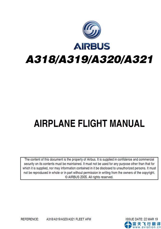北京藍(lán)天飛行翻譯公司完成航空公司2018年12月4日版本空客A321和A320全套飛行手冊(cè)翻譯任務(wù),包含有A321和A320飛行機(jī)組操作手冊(cè)、快速檢查單、飛機(jī)飛行手冊(cè)。04 DEC 18 Airbus A321 and A320 FLIGHT CREW OPERATING MANUAL, QUICK REFERENCE HANDBOOK and AIRPLANE FLIGHT MANUAL Translation 藍(lán)天飛行翻譯公司本次翻譯的A321和A320空客飛行手冊(cè)包含A321-211和A320-216構(gòu)型。飛行機(jī)組操作手冊(cè)(FLIGHT CREW OPERATING MANUAL)和快速檢查單(QUICK REFERENCE HANDBOOK)為2018年12月4日版本,飛機(jī)飛行手冊(cè)(AIRPLANE FLIGHT MANUAL)為2019年3月22日版本。 ![]() A320飛行機(jī)組操作手冊(cè) A320 FLIGHT CREW OPERATING MANUAL ![]() A320快速檢查單 A320 QUICK REFERENCE HANDBOOK ![]() A320飛機(jī)飛行手冊(cè) A320 AIRPLANE FLIGHT MANUAL
