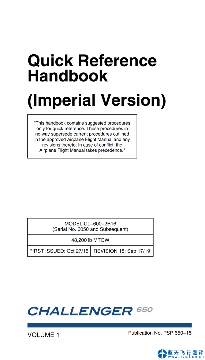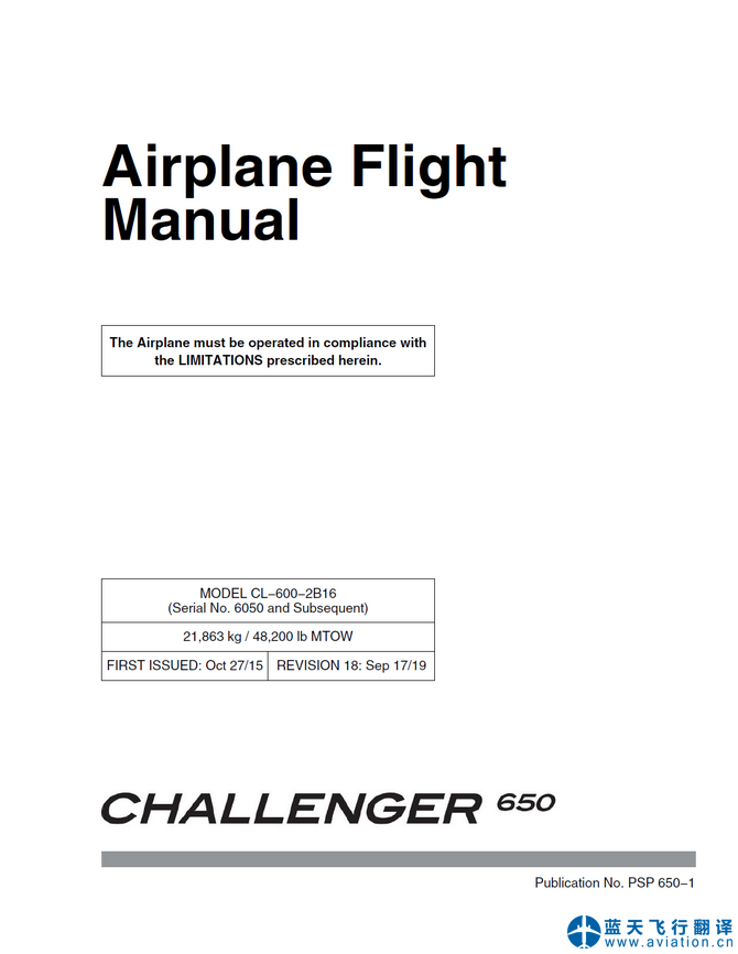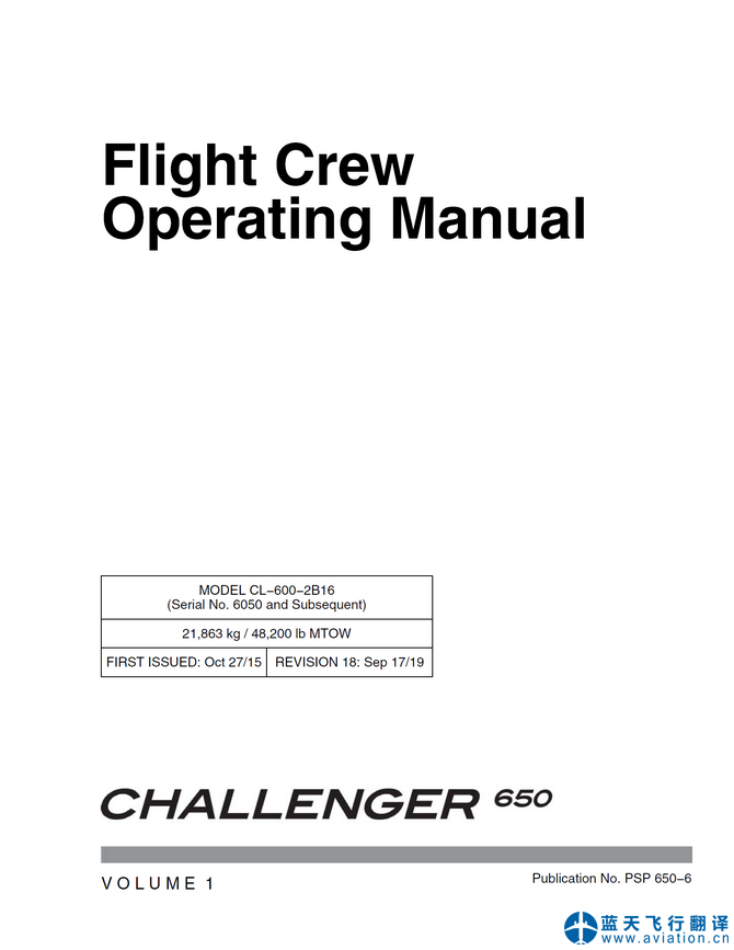 北京藍(lán)天飛行翻譯公司承接公務(wù)機(jī)公司龐巴迪挑戰(zhàn)者650全套飛行手冊(cè)翻譯任務(wù) Bombardier Challenger 650 Flight Manuals Translation 本次承接的龐巴迪挑戰(zhàn)者650公務(wù)機(jī)飛行手冊(cè)有:挑戰(zhàn)者650飛行機(jī)組操作手冊(cè)(CL650 Flight Crew Operating Manual)、挑戰(zhàn)者650快速檢查單(CL650 Quick Reference Handbook)和挑戰(zhàn)者650飛機(jī)飛行手冊(cè)(CL650 Airplane Flight Manual)。版本日期為2019年9月17日第18版 REVISION 18: Sep 17/19。  挑戰(zhàn)者 650 Challenger 650  挑戰(zhàn)者 650 Challenger 650  挑戰(zhàn)者 650 Challenger 650  挑戰(zhàn)者 650 Challenger 650