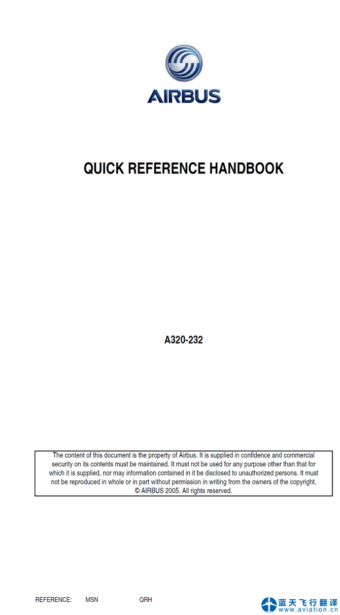 北京藍(lán)天飛行翻譯公司完成大型公務(wù)機(jī)公司的2019年12月11日版本空客公務(wù)機(jī)ACJ319和ACJ320快速檢查單翻譯 11 DEC 19 ACJ319 and ACJ320 QUICK REFERENCE HANDBOOK Translation