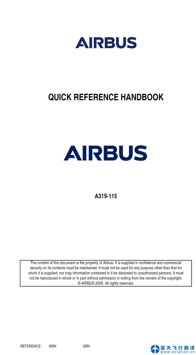 北京藍(lán)天飛行翻譯公司承接大型公務(wù)機(jī)公司的2020年7月15日版本ACJ319快速檢查單(QRH QUICK REFERENCE HANDBOOK)翻譯任務(wù) 15 JUL 20 ACJ319 QUICK REFERENCE HANDBOOK Translation
